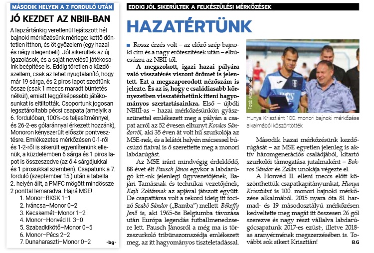Az Monori Sport Egyesület iránt mindvégig érdeklődő,