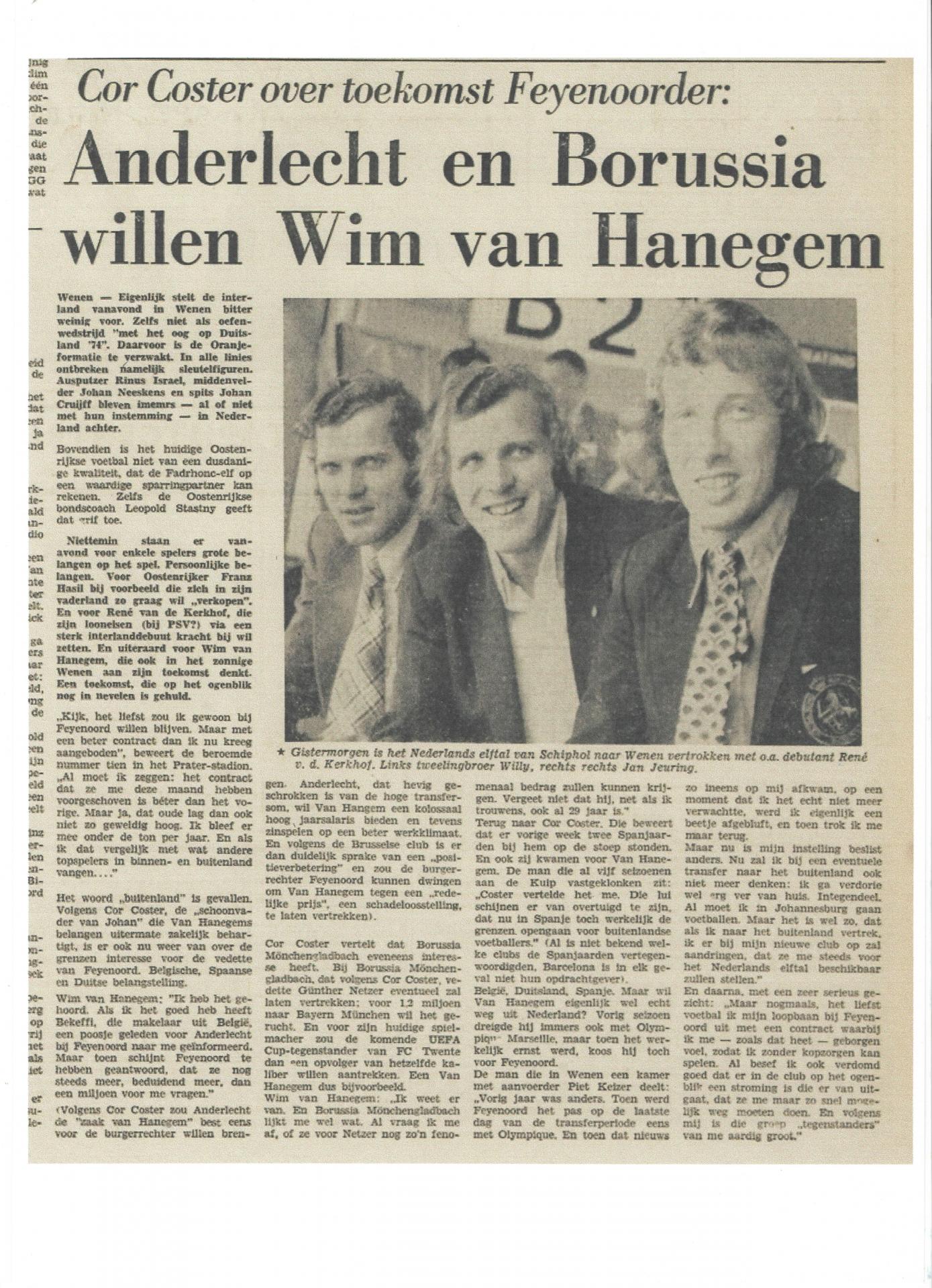 Date 1973 Sujet: Békeffy Jenő, Wim van Hanegem, Anderlecht - Borussia.