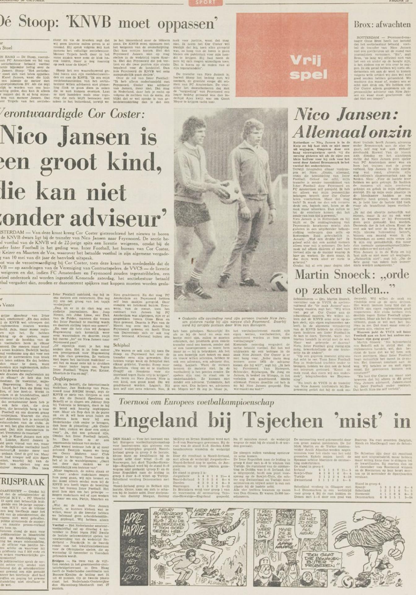 Date 1975 Sujet: Békeffy Jenő, Cor Coster, Nico Jansen, Feyenoord Rotterdam FC
