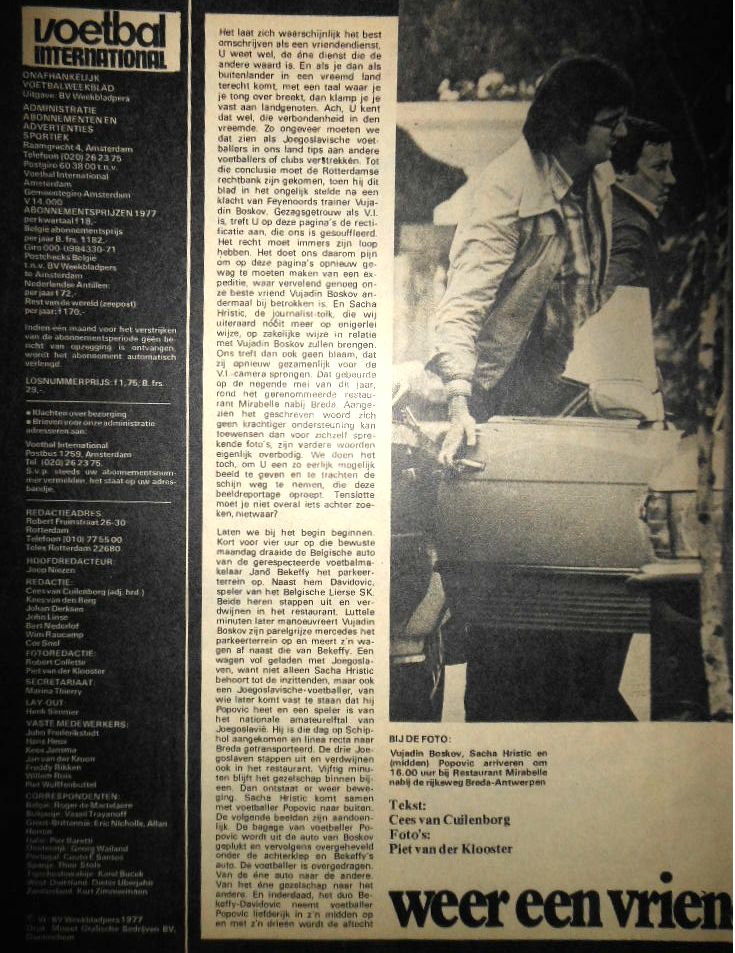 Date: 1972 Sujet: Békeffy Jenő, Vujadlin Boskov, Sacha Hustic, Dimitri Davidovic, Sándor Popovic Club: Lierse SK