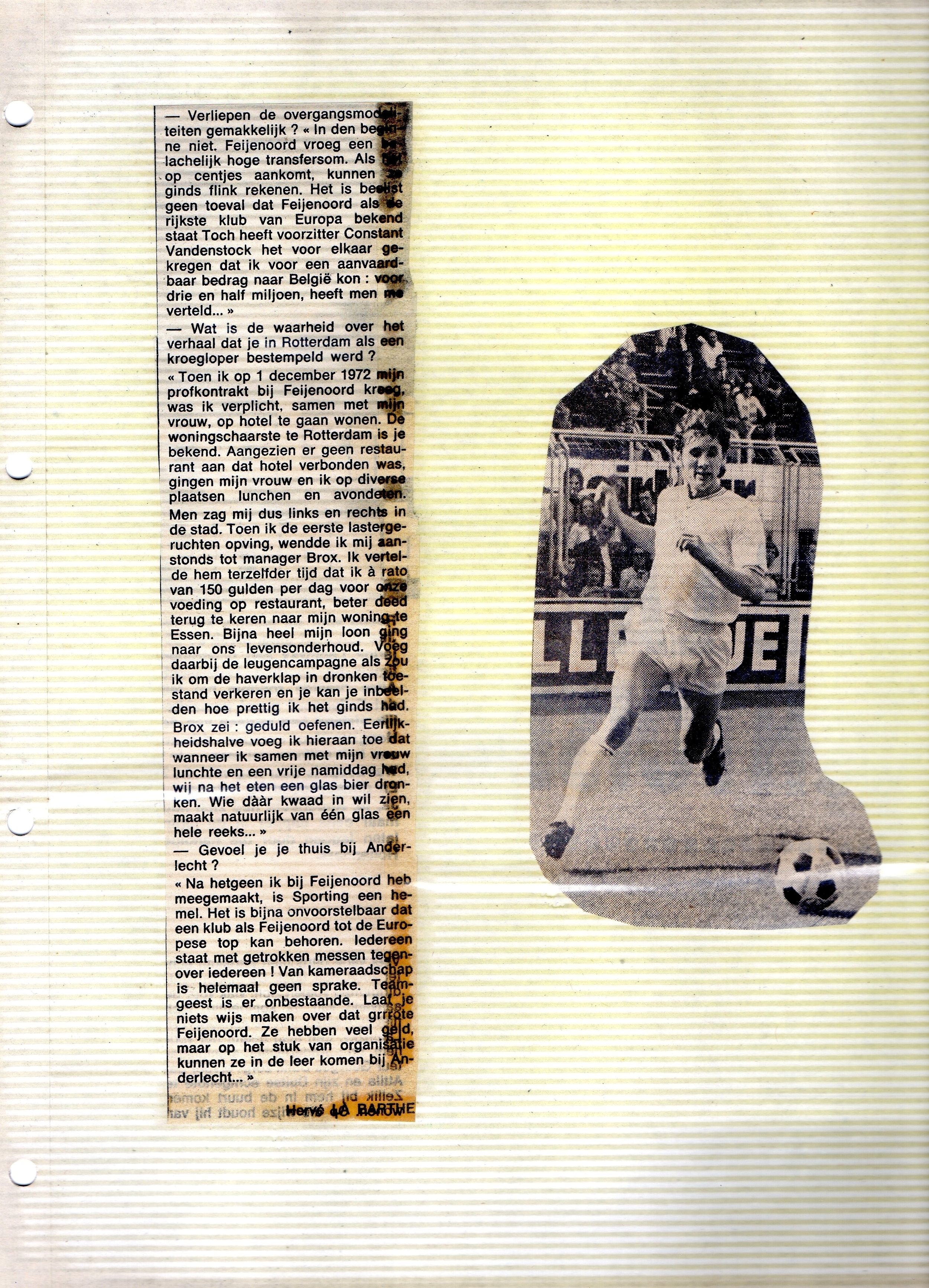 Date: 1972 Sujet: Békeffy Jenő, Transfer of Attila Ladinsky pour 3.500.000 Bf du Feyenoord FC au Racing Club Anderlecht. Clubs: RSC Anderlecht, Feyenoord FC.