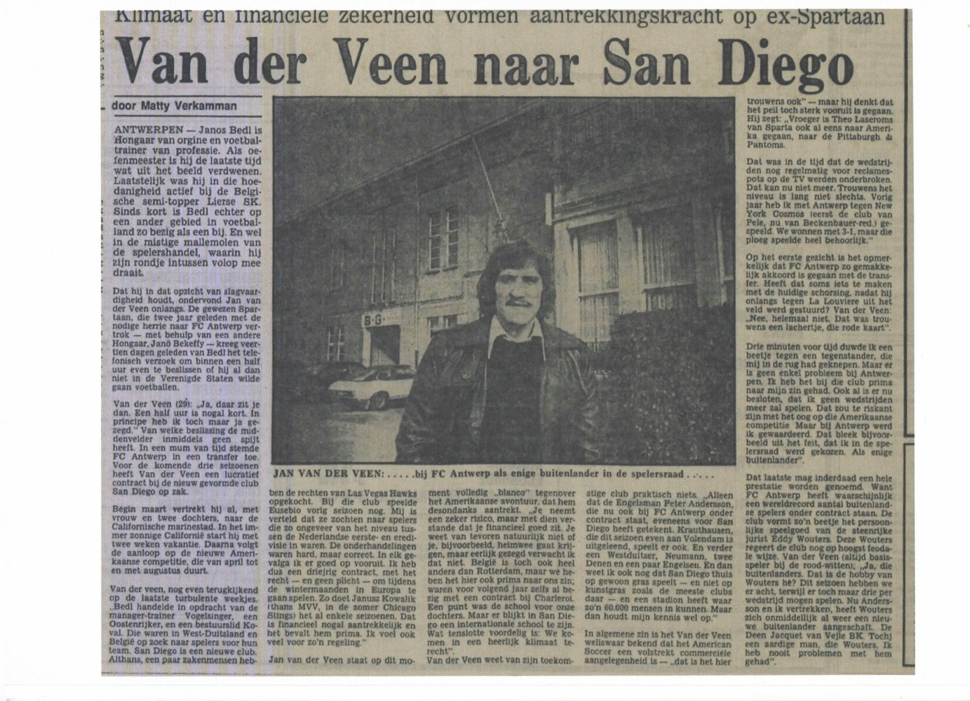 Date 1978 Sujet: Békeffy Jenő, Van der Veen, FC Antwerp - San Diego Sockers.