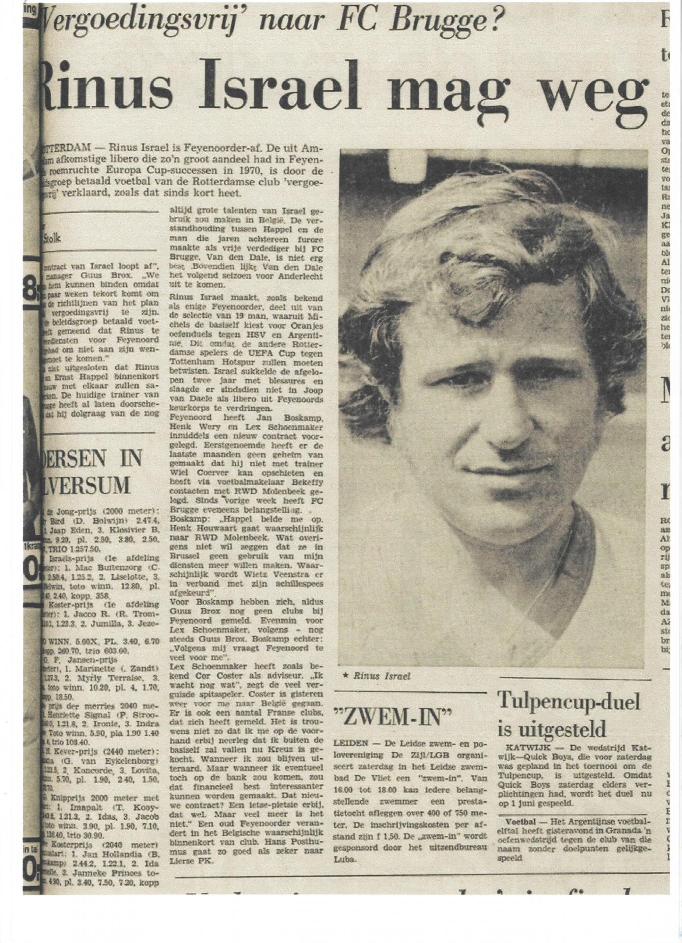 Date 1973 Sujet: Békeffy Jenő, Renus Israel, Feyenoord Rotterdam -FC Brugge.