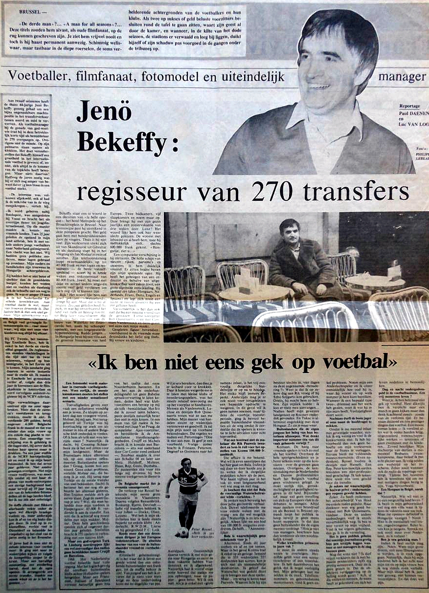 Date: 1981 Sujet: Békeffy Jenő, manager de footbal avec plus de 270 transferts Clubs: RSC Anderlecht, AFC Ajax, RWDM, FC Bruges, FC Lierse