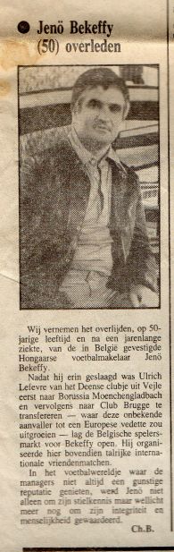 Date: 1987 Sujet: Békeffy Jenö, décédés á l'age de 51 ans Club: FC Bruges
