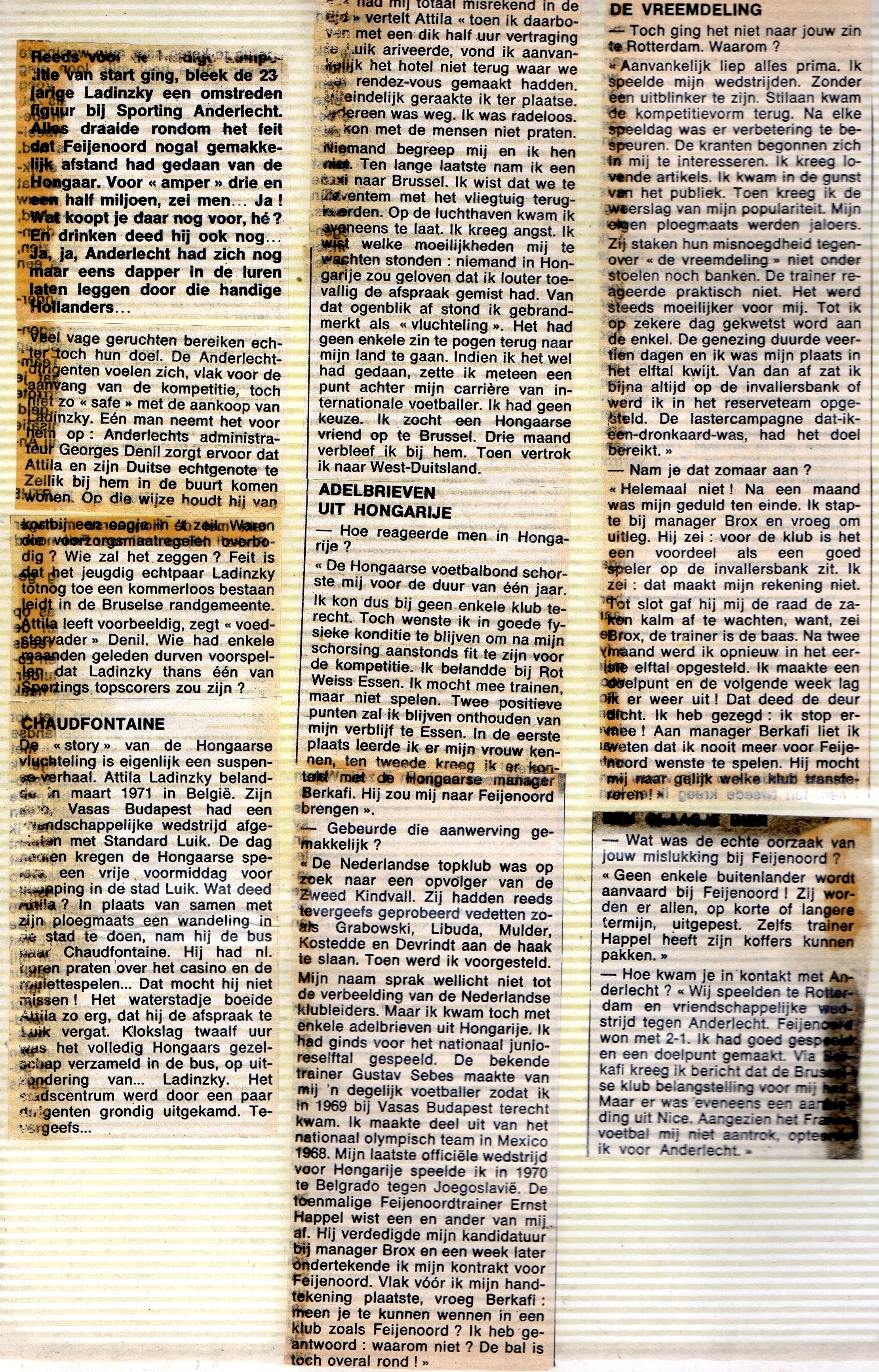 Date: 1972 Sujet: Békeffy Jenő, Transfer of Attila Ladinsky pour 3.500.000 Bf du Feyenoord FC au Racing Club Anderlecht. Clubs: RSC Anderlecht, Feyenoord FC.